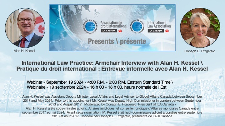 L'Association de droit international du Canada est heureuse de présenter une vaste discussion informelle sur la pratique du droit international avec Alan H. Kessel, ancien conseiller juridique du ministère des Affaires mondiales Canada, animée par Oonagh E. Fitzgerald, présidente de l'ADI Canada.